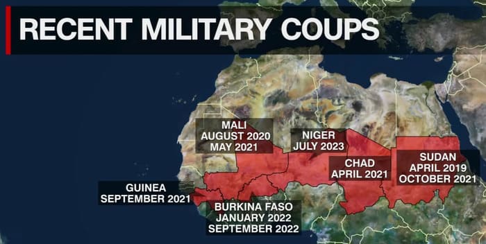 Tras los sucesivos golpes de estado en Mali, Burkina Faso y Níger, estos tres países rompieron sus acuerdos de cooperación militar con la Unión Europea y, principalmente, con Francia.