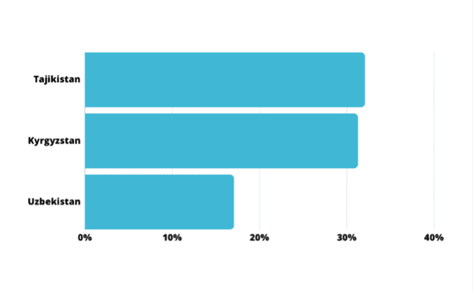 Aquí se puede observar qué parte del PIB de los países centroasiáticos están comprendidos por las remesas. Fuente: Statista